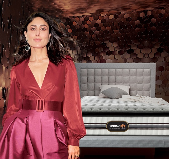 We are proud of our world-class 5 manufacturing plants spread across a combined plant area of 30 acres, with a total capacity to produce 4 lakhs mattresses annually. Springfit makes all its mattresses and major components such as foam, spring, etc., in-house. Springfit also has an extensive distribution network and retail footprint across India with a presence across 23 states and has more than 1000 retailers and 90 exclusive brand stores across the country. Kareena Kapoor seemed the perfect brand fit for Springfit, considering both her and the brands seem to think alike.”