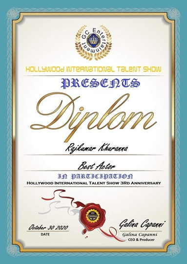 Bollywood actor Rajkumar Khurana has been invited by GC Entertainment CEO Galina Kappani as a special guest for the event to be held on 16 October2021. Galina Kappani honored Rajkumar Khurana in the Hollywood International Talent Show with the Best Actor Award.