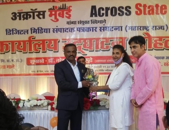 मुंबई में डिजिटल मीडिया संपादक पत्रकार संगठन के कार्यालय उद्घाटन के अवसर पर राजनीत , फिल्म व मीडिया जगत की तमाम हस्तियां मौजूद रही ।इस अवसर पर डिजिटल मीडिया संपादक पत्रकार संगठन मुंबई के अध्यक्ष संजय भैरे ने सभी मेहमानों का सत्कार किया । वहीं पर ह्यूमैनिटी फाउंडेशन की ट्रस्टी रेशमा शेख ने संजय भैरे को पुष्प गुच्छ देकर उनका स्वागत करते हुए डिजिटल मीडिया संपादक पत्रकार संगठन की उज्जवल भविष्य की कामना करने हुए उन्हें और संगठन के पूरी टीम को बधाई दी।