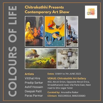 A group art exhibition showcasing recent works of 5 renowned contemporary artists – Vitthal Hire, Pradip Sarkar, Ashif Hossain, Deepak Patil and Paras Parmar has been displayed in Chitrakathhi Art Gallery, Vile Parle, Mumbai from 8thMay to 7thJune 2023 Between 11:00 am to 7 pm.
