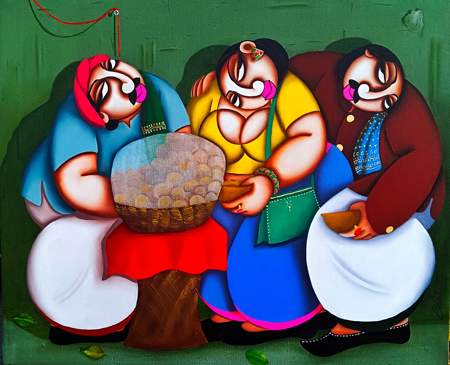 The fantasy-oriented technique of transformation of human figures from naturalism towards an expressionist sobriety based on western modernistic formal orientation. Through synthesis of all this elements, local and global I posits a benign, lyrical, witty, pleasant and colourful exposition of life, where indigenous traditional identity plays a dominant role.