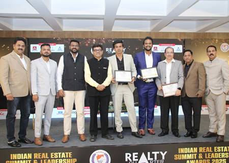 * “वर्ष 2025 का सर्वश्रेष्ठ दूसरा घरेलू और किफायती प्रोजेक्ट” ओम गायत्री बिल्डर्स एंड डेवलपर्स, श्री मौलिक वीरेंद्र शाह और श्री अमित सतीश वाधवा द्वारा प्राप्त किया गया।